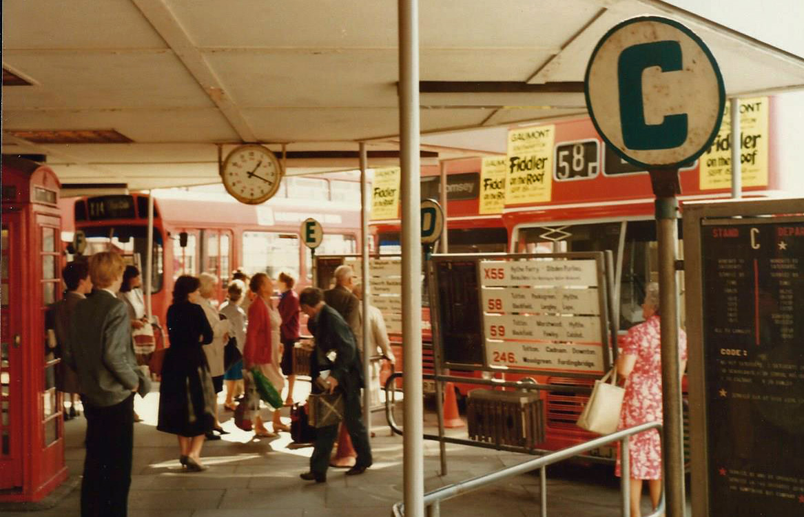 The boarding bays at Southampton Bus Station in 1983, four years before closure.
